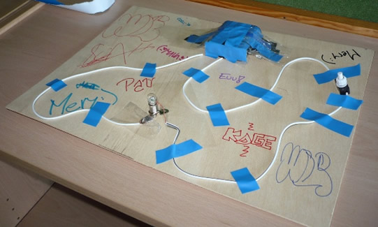 YO RECUERDO QUE DISEÑE UN CIRCUITO ELECTRICO, EL DE LA PILA CON UN BOMBILLITO SOBRE UNA TABLA. UN EXPERIMENTO ALGO SENCILLO PERO NO MENOS INTERESANTE PARA LOS CONOCIMIENTOS DE UN NIÑO.